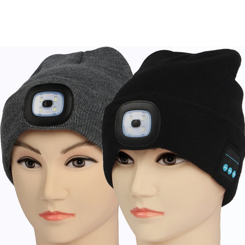 Knit Beanie Bluetooth Wireless Hands Free USB Rechargeable Outdoor LED Headlight
