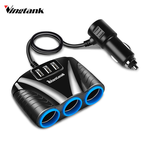Vingtank 1 to 3 USB Power Adapters & 3 Car Cigarette Lighter Sockets with 3.1A - DC 12V-24V usb