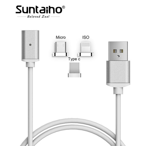 Suntaiho USB 3in1 Magnetic Fast Charging/Data Sync Cable For Type C/Micro/Lightning 1M/3FT