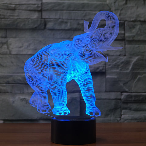 3D Illusion Night Light LED Light 7 Color with Touch Switch USB Cable Nice Gift Home Office Decorations,Elephant-3