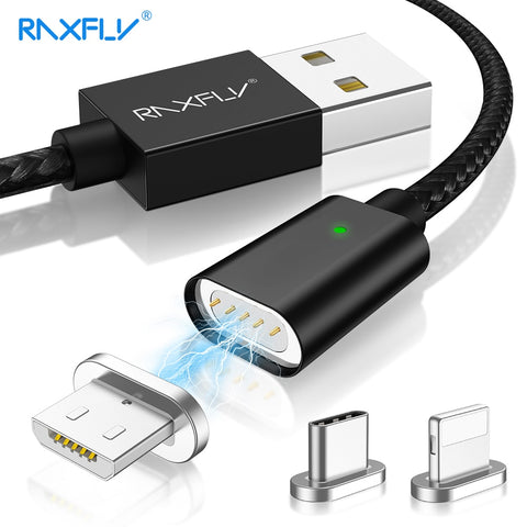 RAXFLY Magnetic USB 2.4A Fast Charging/Data Cable Micro/Type C/Lightning