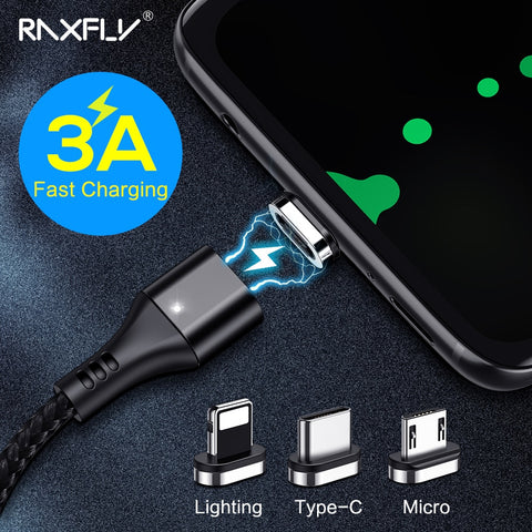 RAXFLY 3A USB Magnetic Fast Charging Cable 3in1-Micro/Type C/Lightning
