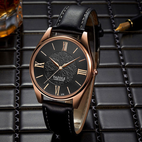 YAZOLE Mens Leather Roman Blue Glass Watch